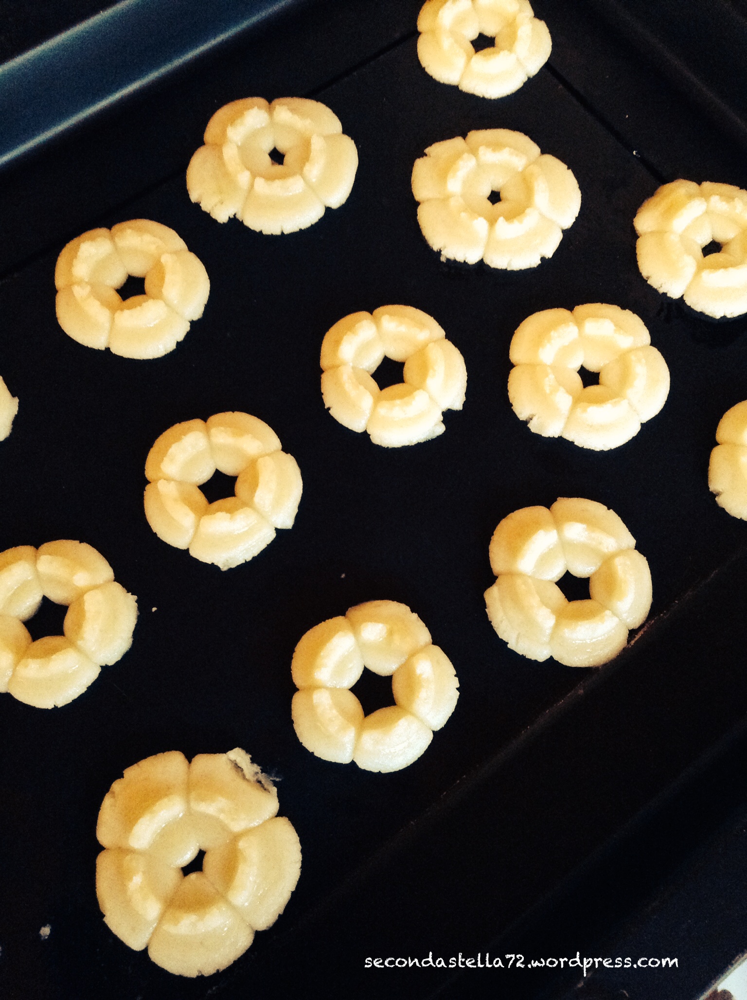 Non sono mancati gli imprevisti da ricetta eseguita per la prima volta e sparabiscotti rotta sul finire (ho la scusa ora per comprarne una come si deve, su Amazon)..