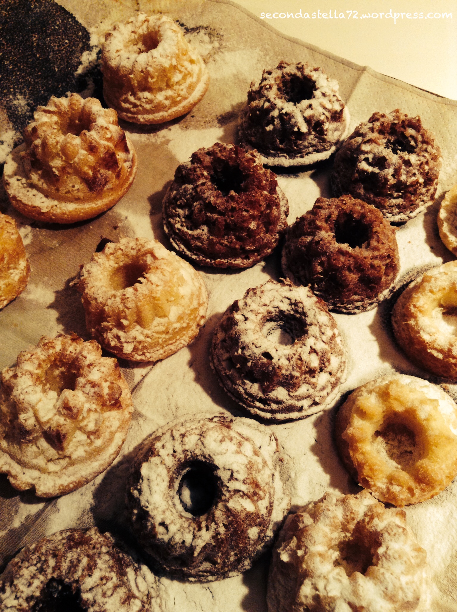 Altre volte, invece, di acquistare stampi nuovi per torte e dolcetti, come se lavorassi in una pasticceria ed avessi una cucina grande quanto una sala da ballo…niente di tutto questo ovviamente, ma non c’è modo di fermarmi: quando decido, devo assolutamente provare, non importa se fa caldo ed il forno acceso non e’ il massimo che si possa chiedere, non importa se il cassettone della cucina mi ricorda che li dentro proprio non ha più posto per ospitare altre collezioni…