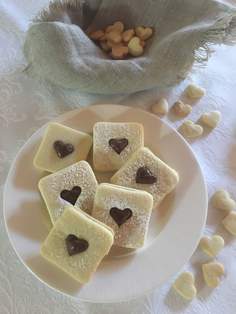 Ogni volta che decido di fare questi biscottini, lascio spazio alla fantasia di sagome e forme. Di solito li farcisco con Confettura di fragole, con la Nutella o con altre confetture golose che ho in casa, fragole, frutti di bosco, albicocche.