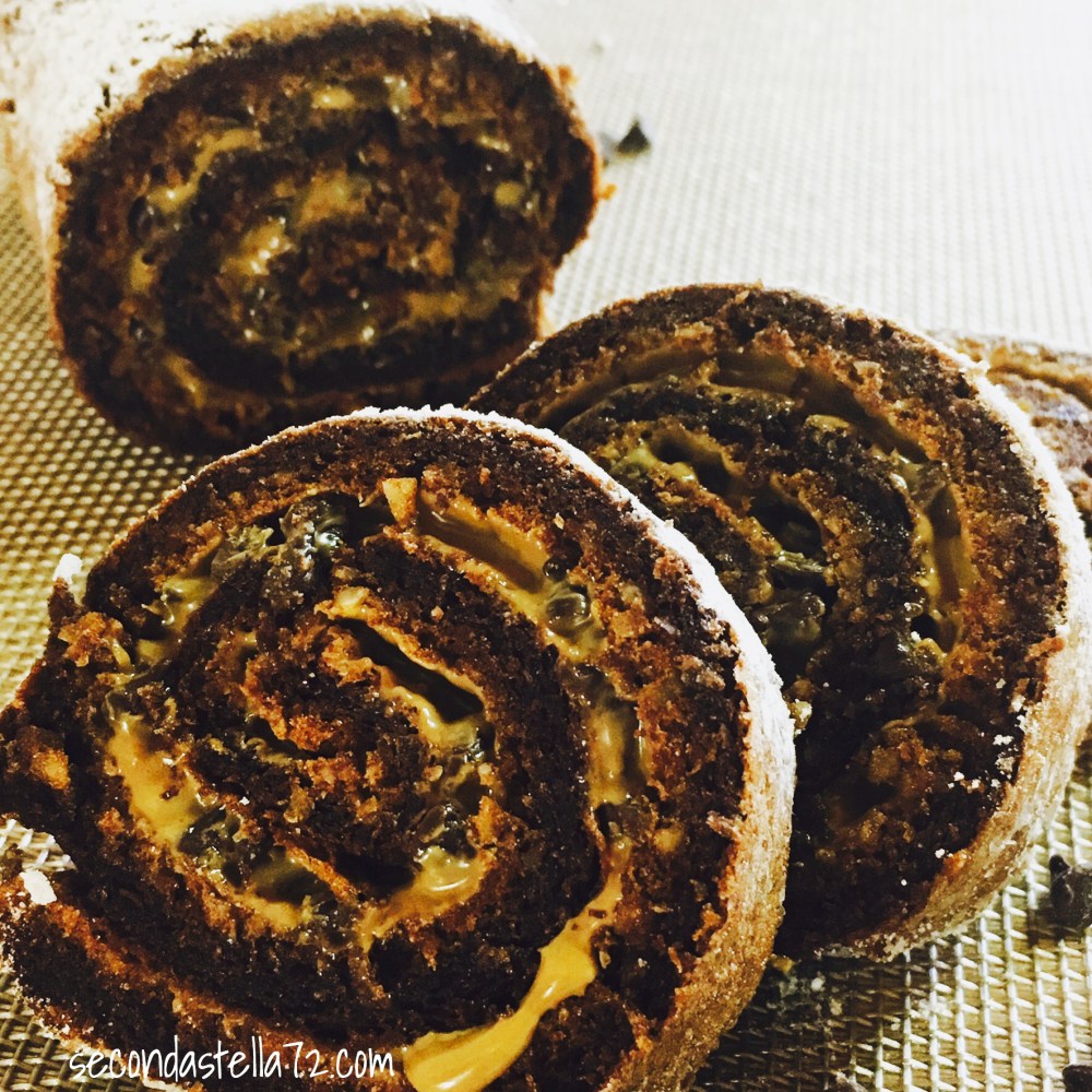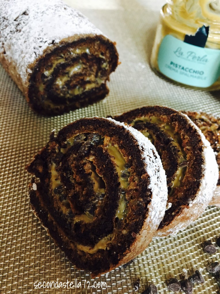E così mi sono lasciata ispirare ed è nato il Rotolo al cacao con crema di pistacchi e gocce di cioccolato.