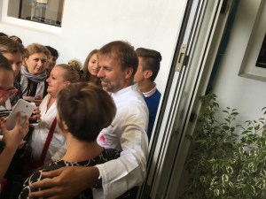 La semplicità del Maestro era attesa da un vasto pubblico che, pazientemente in una lunga coda aspettava di entrare nella sala dedicata alla sua lezione; anche alla fine della lezione uno stuolo di fan lo ha letteralmente bloccato per strappargli un autografo, un selfie, un ricordo del momento.