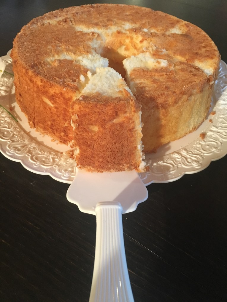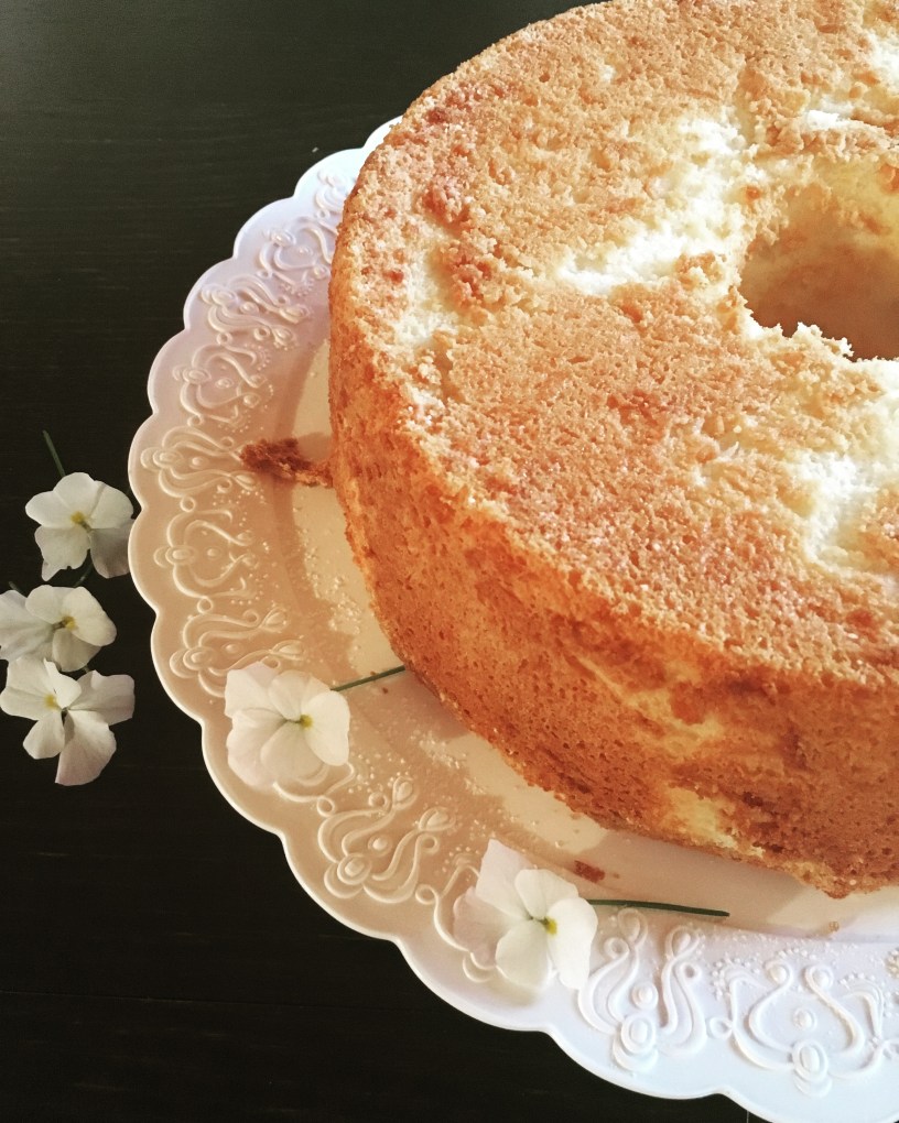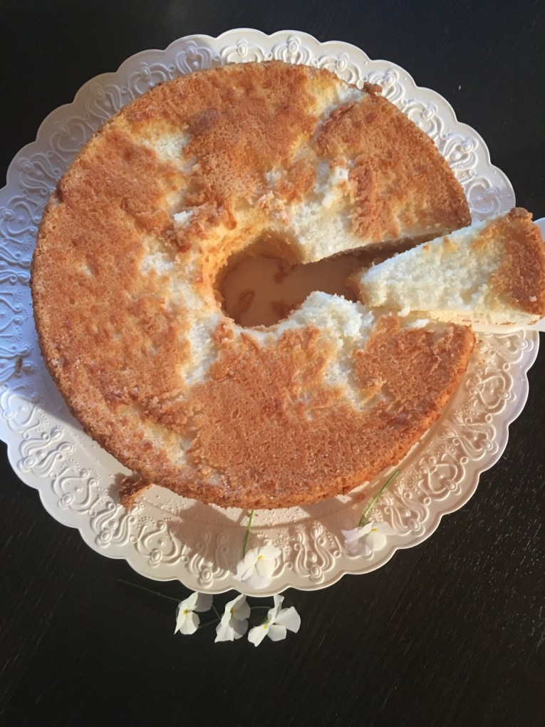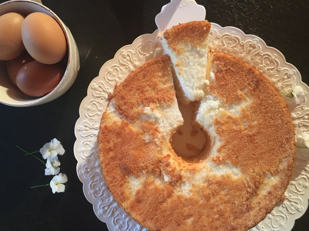 A quel punto, ho pensato ad una ricetta che potesse consentirmi di preparare in un’unica volta un dolce contenente tutti gli albumi. Sono andata a rivedere la ricetta del ciambellone americano Angel Cake per scoprire che di albumi ce ne vogliono ben 12!