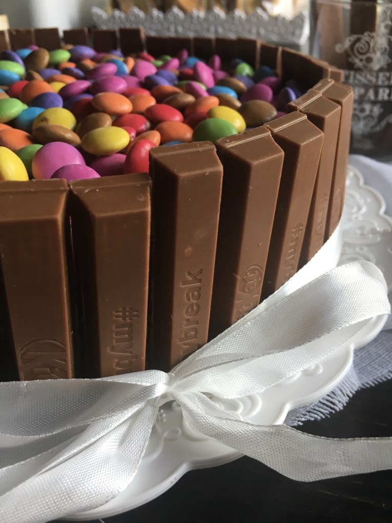 Questa decorazione consente quindi di applicare sui bordi altre decorazioni come ad esempio mandorle a lamelle, nocciole in granella, mentre nel mio caso, vi ho fatto aderire i bastoncini di cioccolato; una volta decorata la torta, ho lasciato riposare in frigorifero cosi che la ganache si potesse indurire e cosi fare da “collante” alle decorazioni scelte.
