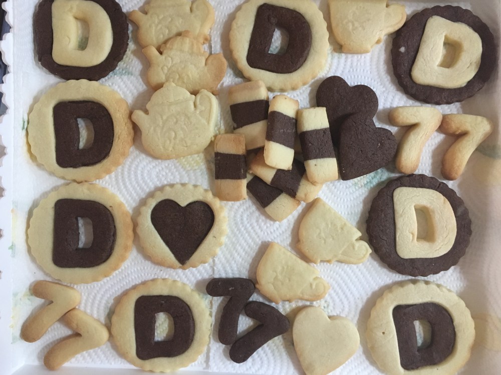 Ovviamente per queste due feste di compleanno, io mi sono sbizzarrita con le sagome, così da realizzare i biscotti bicolore anche con le iniziali di mia madre e di mio padre.