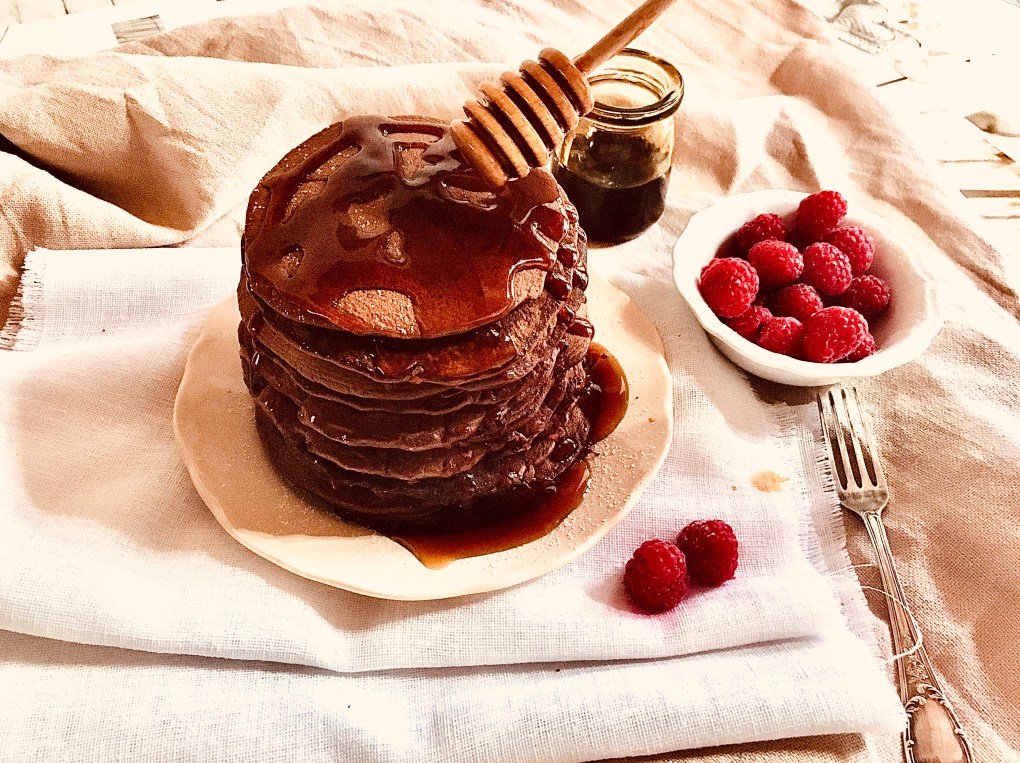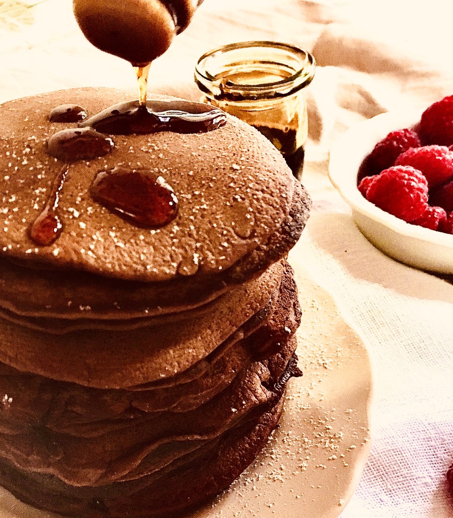 - I pancakes al cioccolato sono ottimi se accompagnati con frutti di bosco e con sciroppo d’acero.